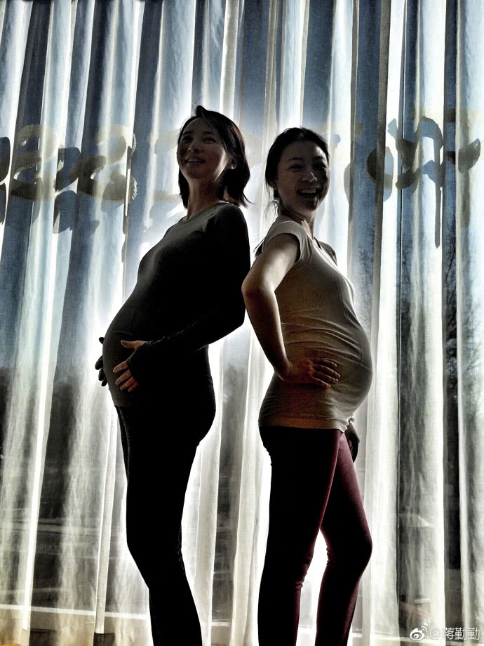3月27日,蒋勤勤在微博中分享一组孕照,并配文道:“一起读艺校,一起吃喝睡,一起练功夫,一起到不惑,你扮‘白蛇’我来‘青蛇’!我们可不是‘塑料花’”是 真花花。我们现在 要一起‘一起生了’,还有什么比这来得,更让人惊‘情’的。”