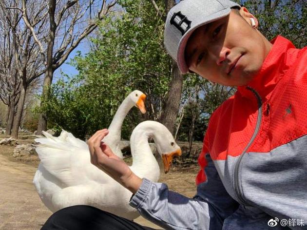 星灿娱乐讯 4月14日,谢霆锋在微博晒出与鹅的自拍照并配文:“煮鹅你好@容祖儿”。只见谢霆锋搂着两只大鹅,搞怪自拍,隔空喊话好友容祖儿,画面十分搞笑。
