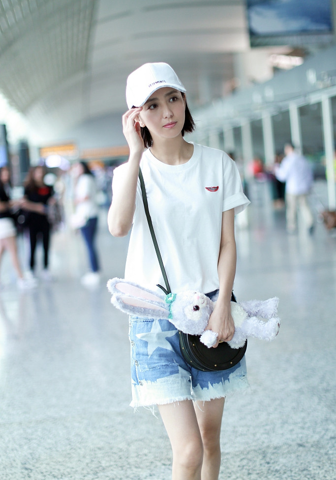 日前,佟丽娅现身机场。她穿白T配牛仔短裤,再加上一顶净色鸭舌帽,穿着显得十分清纯可人,抱“兔子”玩偶爱不释手,少女心十足又十分俏皮可爱。